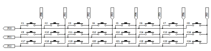 3×8按鍵組合模式下所有按鍵被默認(rèn)為脈沖可重復(fù)觸發(fā)方式,可以直接觸發(fā)24段語(yǔ)音,各個(gè)按鍵所觸發(fā)語(yǔ)音地址可定義。