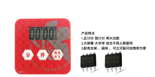 NVD系列語(yǔ)音芯片,為工業(yè)級(jí)OTP語(yǔ)音芯片,目前有封裝為sop8跟dip8,體積小,容量大,音質(zhì)佳,性價(jià)比高,待機(jī)功耗低,滿足40-340秒的語(yǔ)音時(shí)長(zhǎng)需求,占用空間少,外圍電路簡(jiǎn)單,滿足廚房定時(shí)器語(yǔ)音時(shí)間播報(bào)、提醒的功能語(yǔ)音需求。